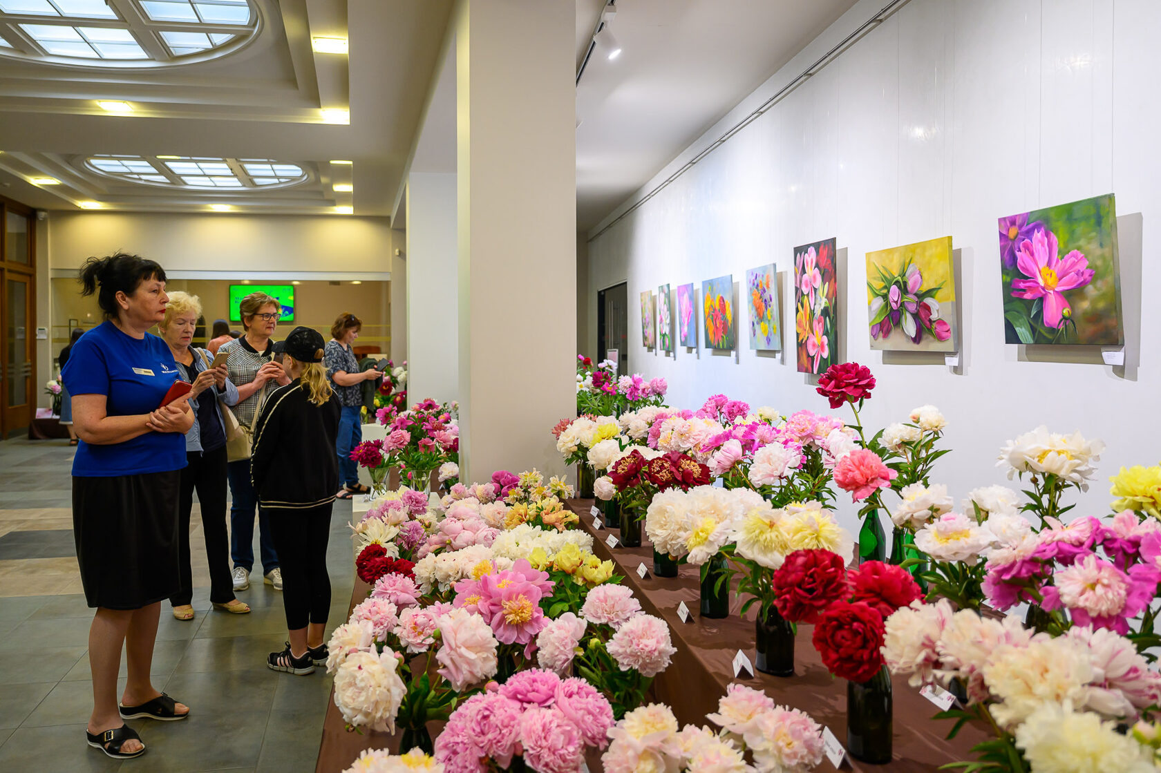 Izstāde Liepājas biedrības namā, kuras laikā notika arī peoniju izstāde.